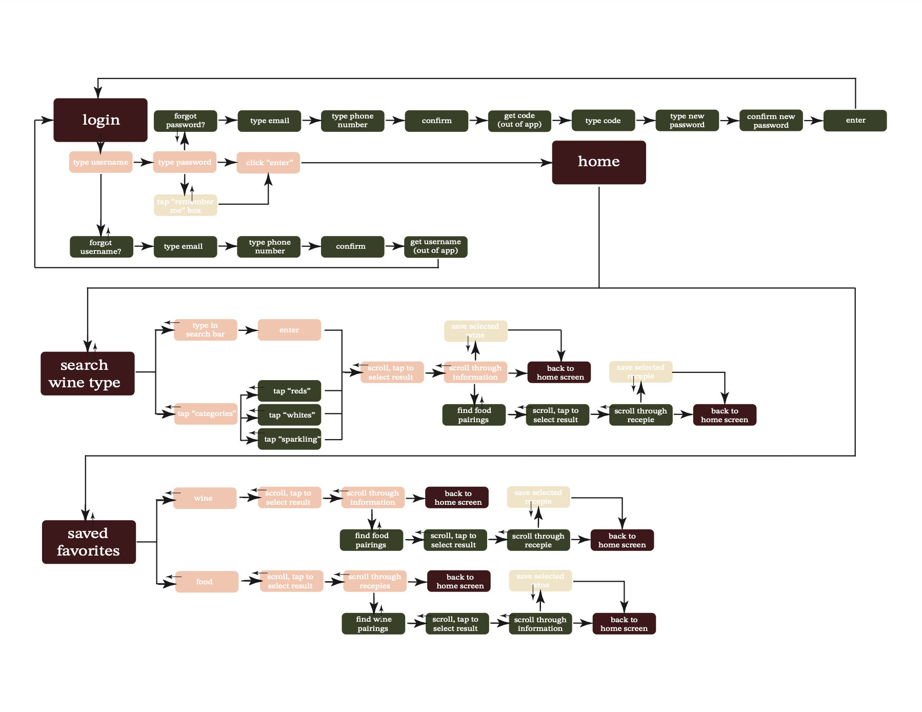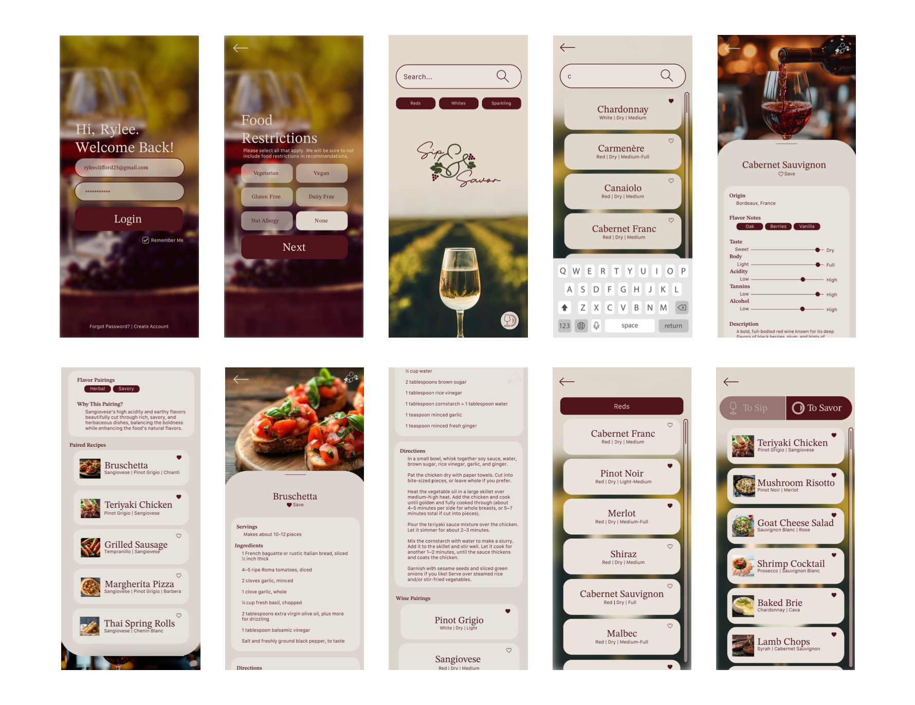I built the Sip & Savor wine pairing app from the ground up, leading the project from initial concept and functionality planning through user flow development, branding, interface design, and interactive prototyping to create an intuitive wine pairing app.
